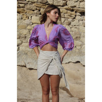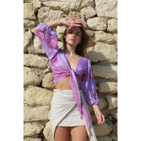 Bolero o Top de color Lila con diferentes estampados disponibles. Esta prenda viene pisando fuerte, y será una de las esenciales este verano.