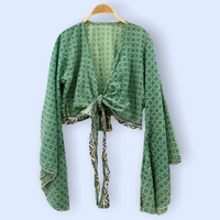 Se trata de un Top con mangas y una cinta con la que anudar el pecho.