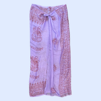 Pareo de rayón en color lila y con detalles en rojo.