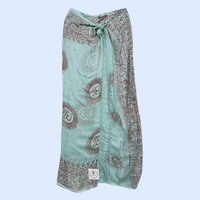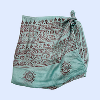Pareo o pañuelo de color turquesa con detalles en rojo que se puede usar de diferentes formas, como vestido o pareo.
