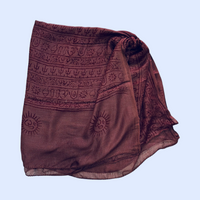Pareo de rayón en color chocolate y con detalles en burdeos.