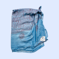 Pareo de rayón en color azul cielo y con detalles en rojo.