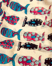 Pareo de algodón, estampado manualmente mediante la técnica de block print.