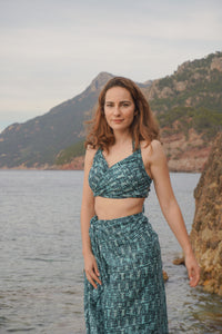 Pareo de algodón, de edición limitada. Estampado manualmente mediante la técnica de block print.