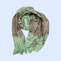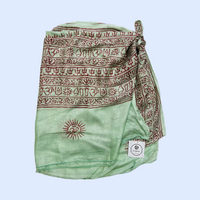 Pareo o pañuelo de color turquesa con detalles en rojo que se puede usar de diferentes formas, como vestido o pareo.