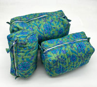 Set de 3 piezas fabricado en algodón, con la técnica de khanta. Está forrado en el interior con tejido impermeable.