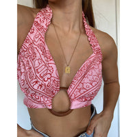 El diseño de este top permite atarlo de distintas maneras. (Lo entregamos con un aro para uno de los atados)