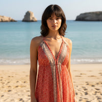 Vestido de tirantes ajustables,  estampado artesanalmente mediante Block Print.