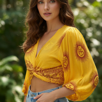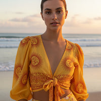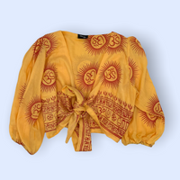 Bolero o Top de color anaranjado con diferentes estampados disponibles. Esta prenda viene pisando fuerte, y será una de las esenciales este verano.