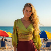 Bolero o Top de color verde-lima con diferentes estampados disponibles. Esta prenda viene pisando fuerte, y será una de las esenciales este verano.