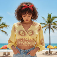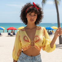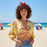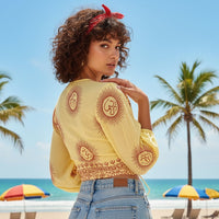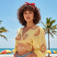 Bolero o Top de color amarillo-limón con diferentes estampados disponibles. Esta prenda viene pisando fuerte, y será una de las esenciales este verano.