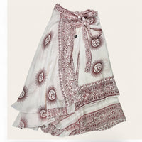Falda pareo blanca con dibujo estampado en rojo.