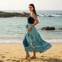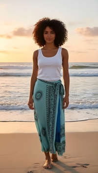 Una de las prendas indispensables este verano es la falda pareo. La nuestra, en versión larga, resulta muy cómoda para ir a la playa, pero en general nos sirve para cualquier plan.