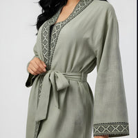 Kimono de algodón, con dibujo hecho con block print.