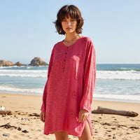 Kurta de rayón en color chicle y con detalles en rojo.