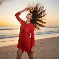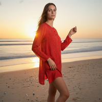Kurta de rayón en color rojo y con detalles en burdeos.