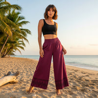 Pantalón de algodón, con dibujo hecho con block print.