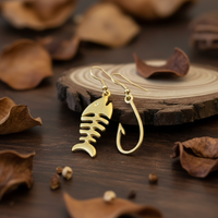 -Pendientes con diseño de pez y anzuelo.