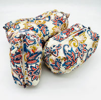 Set de 3 piezas fabricado en algodón, con la técnica de khanta. Está forrado en el interior con tejido impermeable.