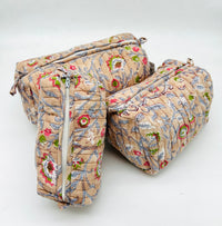 Set de 3 piezas fabricado en algodón, con la técnica de khanta. Está forrado en el interior con tejido impermeable.